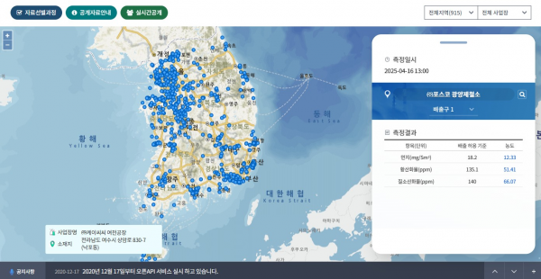 양한나 환경부 대기환경정책과장은 “굴뚝 자동측정기기를 이용한 배출량 산정 방식은 가장 신뢰성이 높은 방법이며 앞으로도 사업장의 대기오염물질 배출량의 과학적인 관리를 통해 오염원의 자율적 관리를 유도해 국내 대기질 개선 정책을 견인해 나가겠다”고 밝혔다.