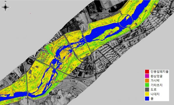 [Q뉴스] 환경부 소속 국립환경과학원은 첨단 원격탐사 기술과 인공지능을 융합해 금강 유역의 생태 교란 외래식물을 자동으로 구분할 수 있는 기술을 개발하고 이를 적용한 ‘생태 교란 식물 군락지 지도’를 7월 1일 관련 지자체 등에 제공한다고 밝혔다.