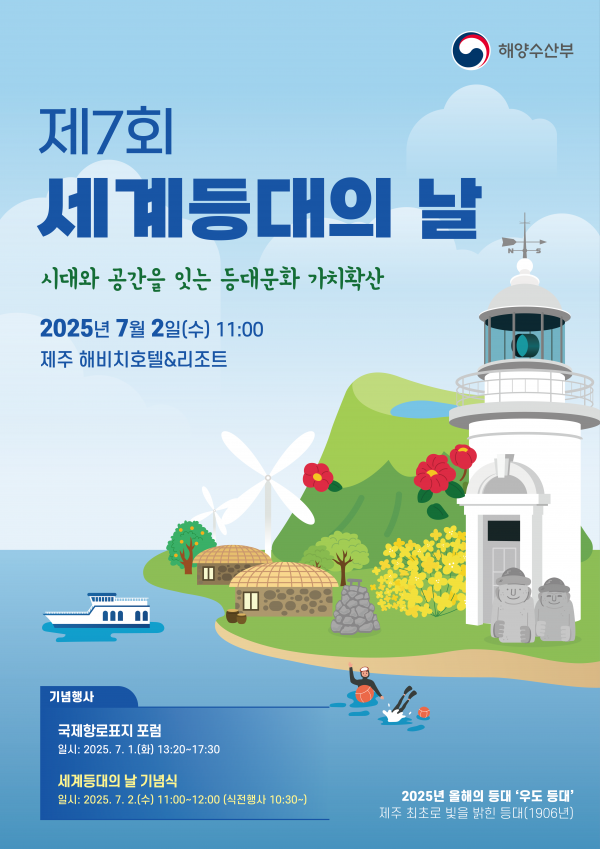 [Q뉴스] 해양수산부는 7월 2일 11시 해양수산부 올해의 등대로 선정된 ‘우도등대’ 가 위치한 제주에서 ’ 시대와 공간을 잇는 등대문화 가치확산’을 주제로 ‘제7회 세계등대의 날’ 기념식을 개최한다고 밝혔다.