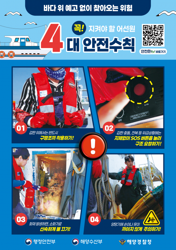 지방자치단체, 수협, 한국해양안전교통공단 등 관계기관에는 영상에 접속할 수 있는 QR코드가 포함된 어선사고 예방 포스터도 함께 배포한다.