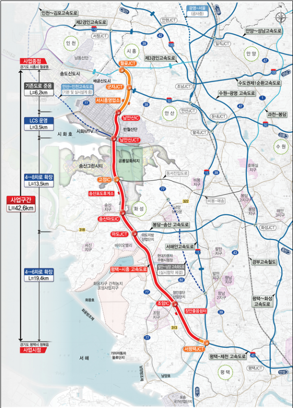 이 사업은 현재 운영 중인 평택-시흥 고속도로 총 연장 42.6km 중 36.4km 구간을 기존 왕복 4차로에서 왕복 6~8차로로 확장하는 사업으로 산업 물류 네트워크의 중추적 역할을 하는 평택-시흥 고속도로의 용량 확충을 통해 수도권 서남부 지역의 교통혼잡을 해소하고 송산그린시티 등 장래 교통수요와 인천항, 평택·당진항의 산업물동량 증가에 대응하기 위해 추진한다.
