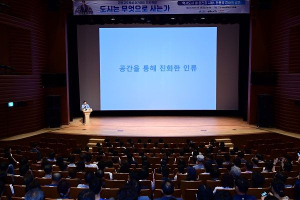 유현준 교수는“도시란 무엇인가”라는 주제와 “역사도시 내 공간과 사람, 전통과 공존”이라는 부제로 강연을 펼쳤으며 도시와 건축이 사람의 삶과 사회에 미치는 영향, 역사도시 고령이 나아갈 미래 비전에 대해 깊이 있는 통찰을 전했다.