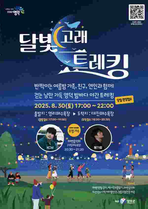 [Q뉴스] 여름의 끝자락, 동해안 최장의 백사장이 펼쳐진 영덕 고래불 권역에서 낭만 가득 밤바다 트레킹 행사 ‘2025 달빛고래트레킹’ 이 펼쳐진다.