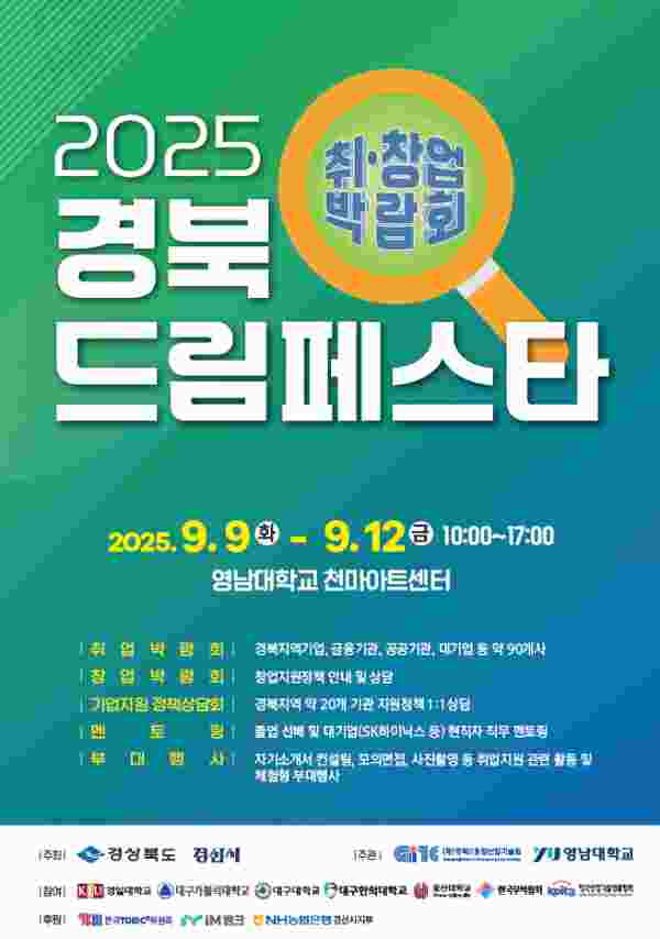 [Q뉴스] 경상북도와 경산시가 주최하는 ‘2025 경북 드림페스타’ 가 9일부터 12일까지 4일간 영남대학교 천마아트센터 일원에서 개최된다.