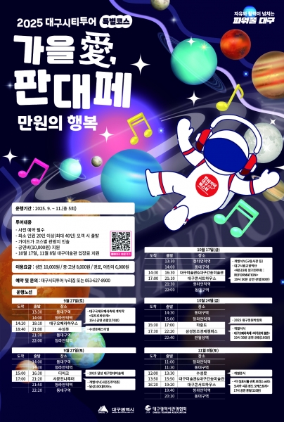 이번 특별노선은 지역의 예술·공연·축제를 하나로 묶은 ‘판대페’ 와 연계해, 대구의 대표 문화행사를 한눈에 둘러볼 수 있도록 알차게 구성됐다.