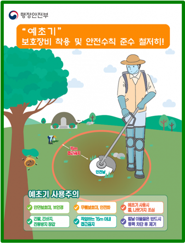 특히 9월은 여름 동안 자란 풀을 정리하거나 벌초 작업으로 예초기 사용이 늘어남에 따라, 이로 인한 사고 발생 위험도 높다.
