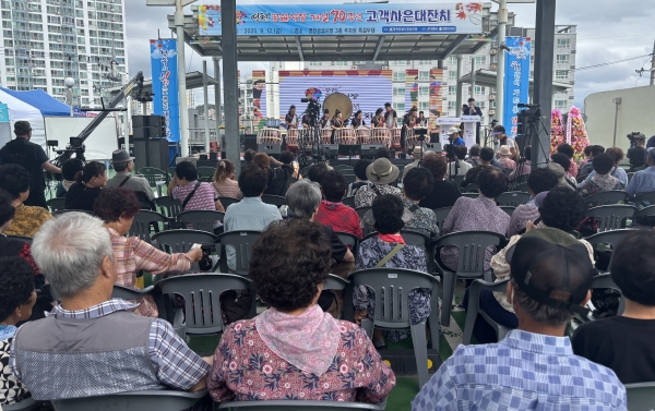 [Q뉴스] 영천시는 12일 영천공설시장 3층 주차장 특설무대에서 올해 개설 70주년을 맞아 ‘영천공설시장 고객사은대잔치’를 개최했다고 밝혔다.