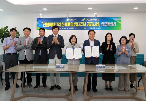 [Q뉴스] 안동시와 한국토지주택공사는 산불피해 이재민의 주거 안정을 위해 ‘산불피해지역 신축매입 공급사업’에 대한 업무협약을 9월 15일 체결했다.