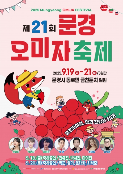 폐막식이 열리는 21일에는 문경오미자 노래교실 경진대회를 비롯해 박미영, 앵두걸스, 장혜진, 한혜정의 축하공연으로 축제 마지막 날 대미를 장식한다.