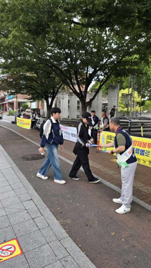 이번 캠페인은 쓰레기 배출량이 많은 대학가 지역을 중심으로 추진했으며 일몰 후 배출 실천 및 올바른 분리배출 요령 안내를 목적으로 출근길 시민과 학생들에게 △외국인 대상 생활 쓰레기 자석형 홍보물, △일몰 후 배출 전단지, △폐가전 내 집 앞 맞춤 수거 안내문을 배부하고 분리배출 요령을 직접 안내해 시민들의 적극적인 참여를 이끌어냈다.