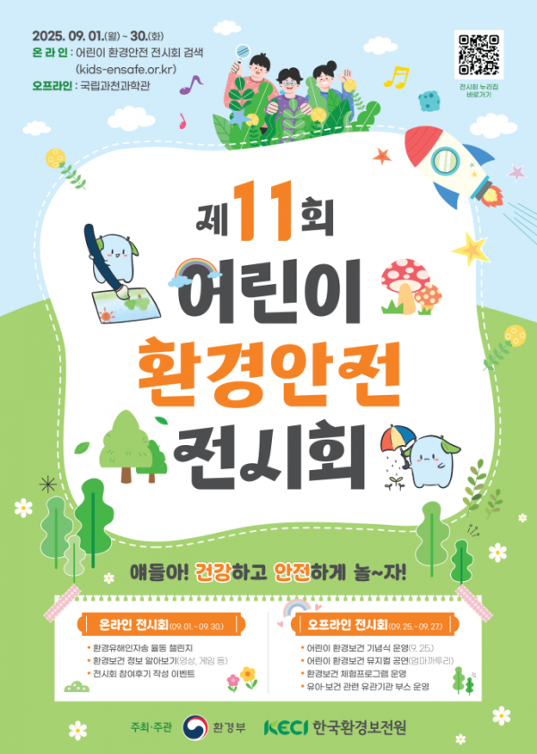 [Q뉴스] 환경부와 한국환경보전원은 9월 25일부터 27일까지 국립과천과학관에서 ‘제11회 어린이 환경안전 전시회’를 개최한다.