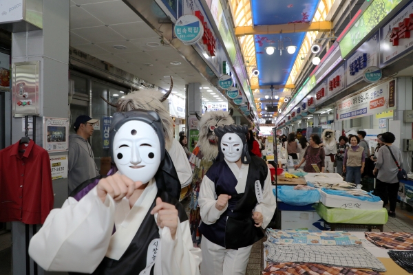 안동국제탈춤페스티벌 기간 동안 안동의 구시장, 신시장, 용상시장이 매일 흥겨운 퍼레이드 무대로 변신한다.