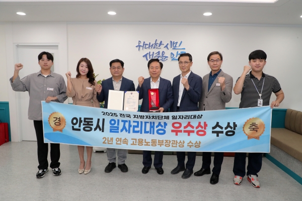 [Q뉴스] 안동시는 9월 30일 청주 오스코에서 열린 ‘2025 전국 지방자치단체 일자리대상’ 시상식에서 지역일자리목표 공시제 부문 우수상을 수상했다고 밝혔다.