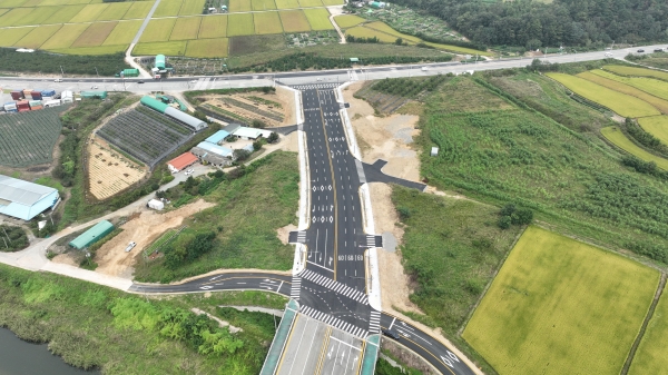 이번에 개설된 도로는 총사업비 46억원을 투입해 산동읍 임천리 금전교에서 산호대로까지 총연장 210m, 폭 30m 규모로 조성됐다.