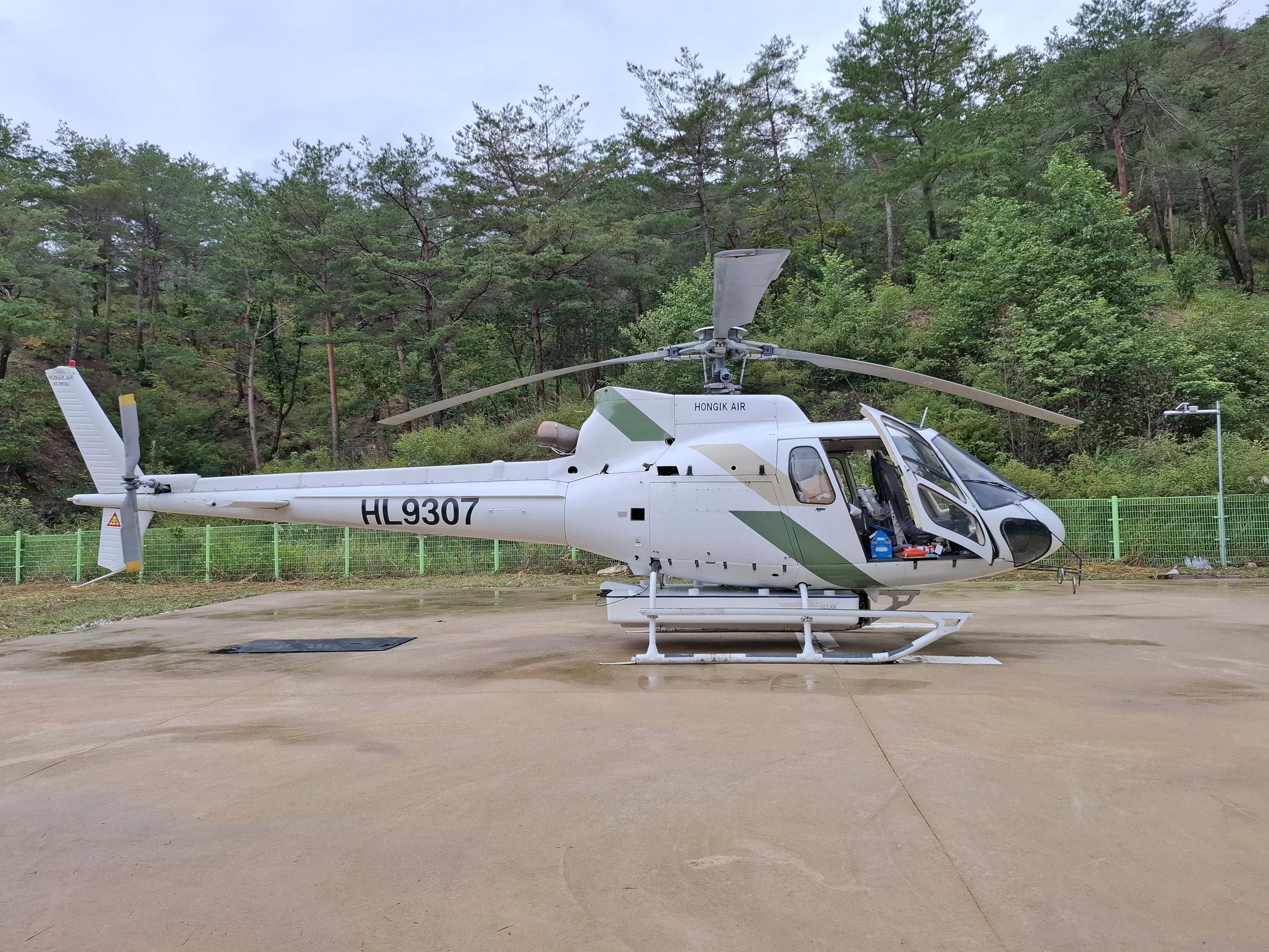 [Q뉴스] 울진군(군수 손병복)은 연중화- 대형화 되어가는 산불에 대응하기 위해 10월 11일부터 북면 구수곡자연휴양림 내 계류장에 진화헬기(AS-350B2, 730L) 1대를 조기 배치했다.