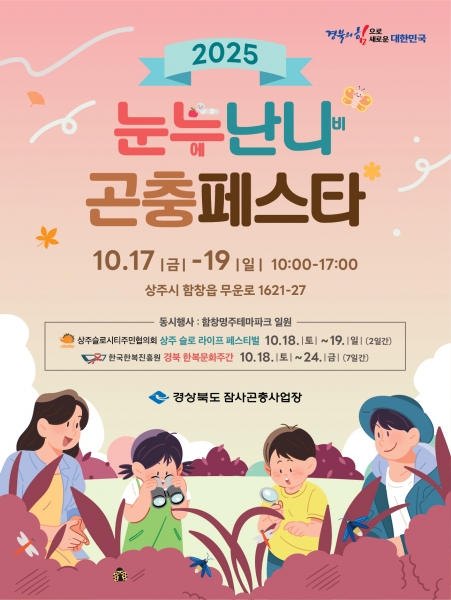 [Q뉴스] 경상북도 잠사곤충사업장은 17일부터 19일 3일간 잠사곤충사업장 일원에서 ‘2025 눈누(에)난나(비) 곤충페스타’를 개최한다.