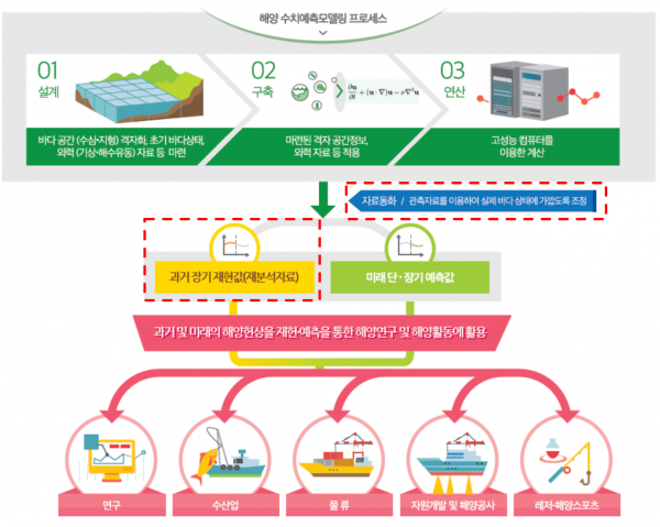 조사원은 해양 관측자료의 시·공간적 한계를 극복해 해양을 3차원으로 예측하는 기술을 개발·고도화하고 있으며 관측자료와 예측 기술을 융합해 실제 과거 해양의 상태를 재현한 해양재분석자료를 국민에게 제공하고 있다.