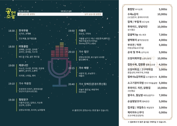 이날 행사는 남성시장 닭전골목에서 오후 6시부터 오후 9시까지 진행되며 문화공연, 체험프로그램, 상주 식문화 소개, 닭전골목 소개, 축제음식 특별부스 운영 등 다채롭게 진행된다.