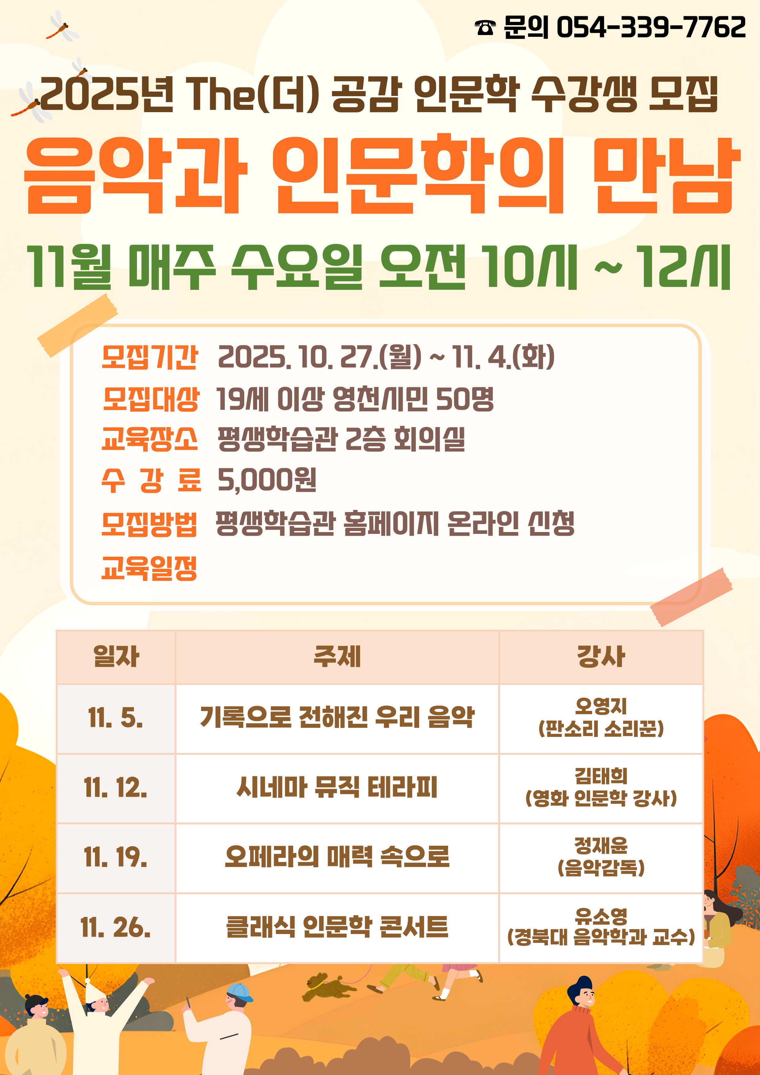 [Q뉴스] 영천시 평생학습관(관장 정경자)은 ‘2025년 하반기 The(더) 공감 인문학 특강’ 11월 수강생을 10월 27일부터 11월 4일까지 모집한다.