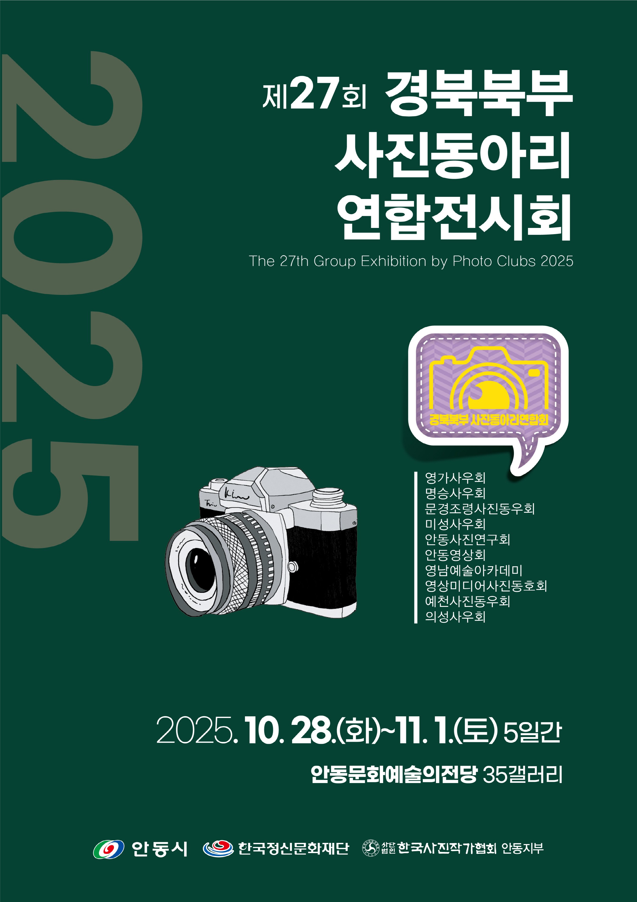 [Q뉴스] 경북북부사진동아리연합회(회장 박유환)는 오는 10월 28일(화)부터 11월 1일(토)까지 5일간 안동예술의전당 갤러리에서 ‘제27회 경북북부사진동아리연합전시회’를 개최한다.