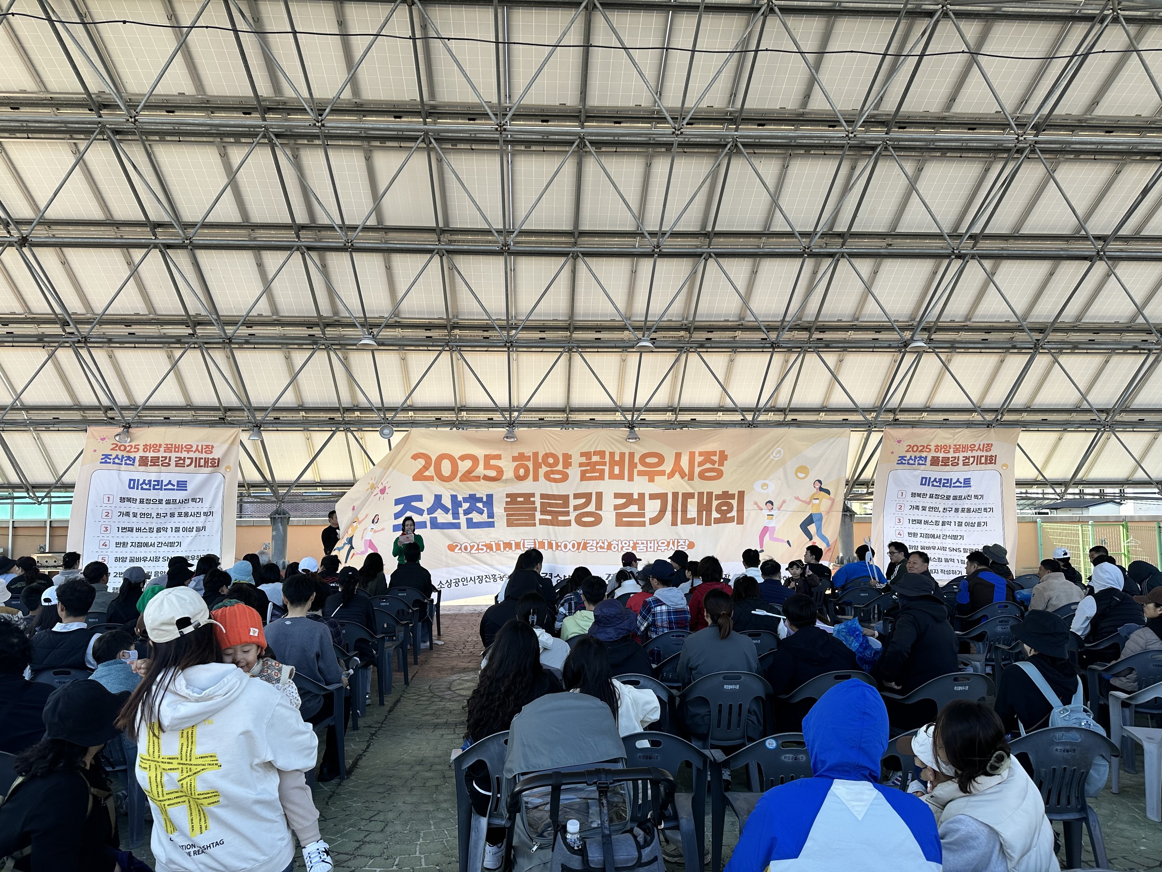 이번 걷기대회는 문화관광형시장 육성 사업의 일환으로 중소벤처기업부, 소상공인시장진흥공단, 경상북도, 경산시가 주최하고 하양꿈바우시장 상인회(회장 서정화)가 주관했으며. 지역 주민과 상인 등 200여명의 시민들이 참여해 시장과 인접한 조산천을 따라 약 2.6km 구간을 걸으며 쓰레기를 줍는 ‘플로깅(Plogging)’활동을 펼쳤다.