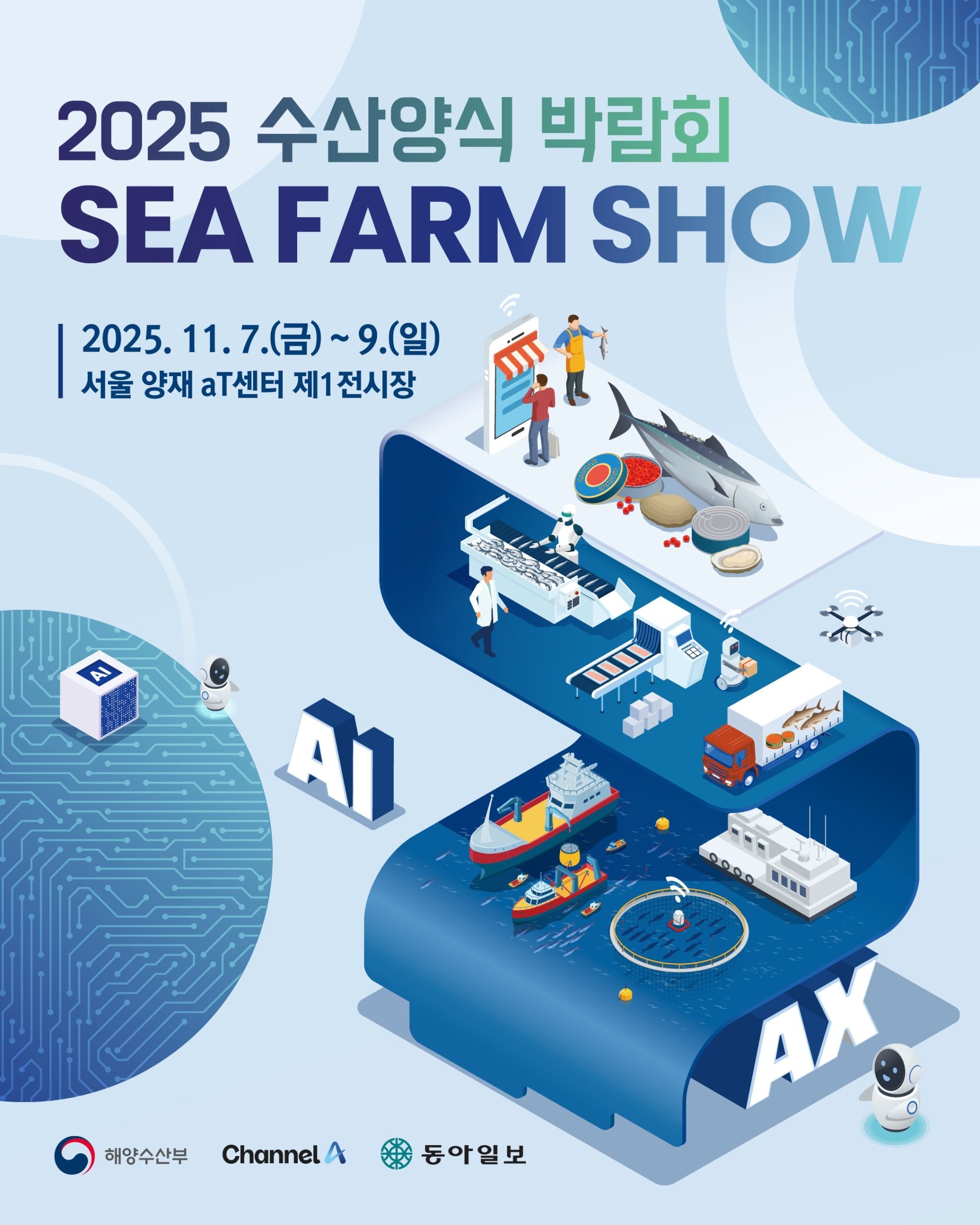 [Q뉴스] 해양수산부는 11월 7일부터 9일까지 서울 양재 aT센터 1층 제1전시장에서 ‘2025 수산양식박람회’를 개최한다고 밝혔다.