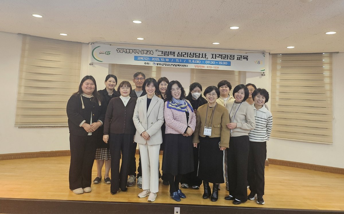 [Q뉴스] 봉화군청소년상담복지센터는 10월 18일부터 11월 8일까지 3주간 토요일마다 상담자원봉사자 및 멘토 16명을 대상으로 오후 3시간 과정의 그림책 심리상담사 자격과정을 운영했다.
