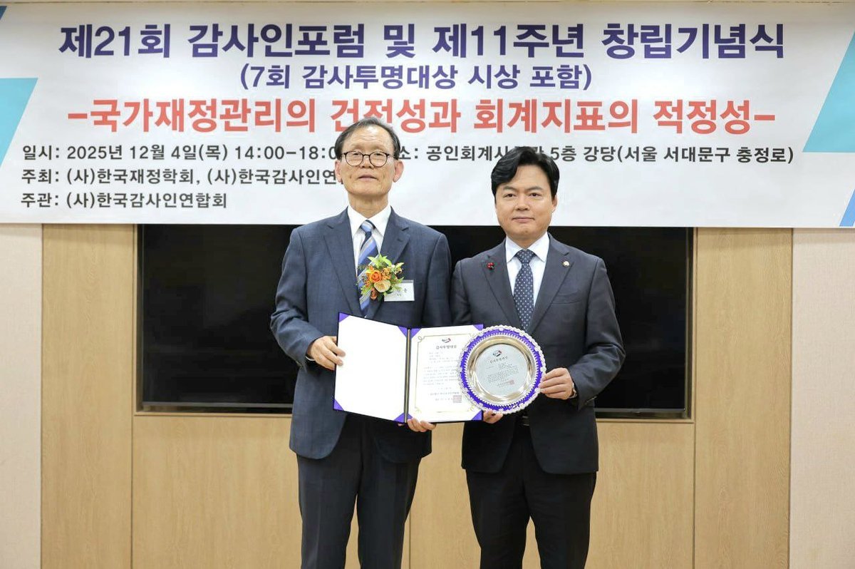 김 의원은 이번 2025년 국정감사에서 회계투명성 후퇴 문제를 날카롭게 지적하고, 4대 회계법인의 비감사업무 비중 확대에 따른 감사업무 부실 우려를 제기하는 등 회계 개혁에 앞장선 공로를 인정받았다.