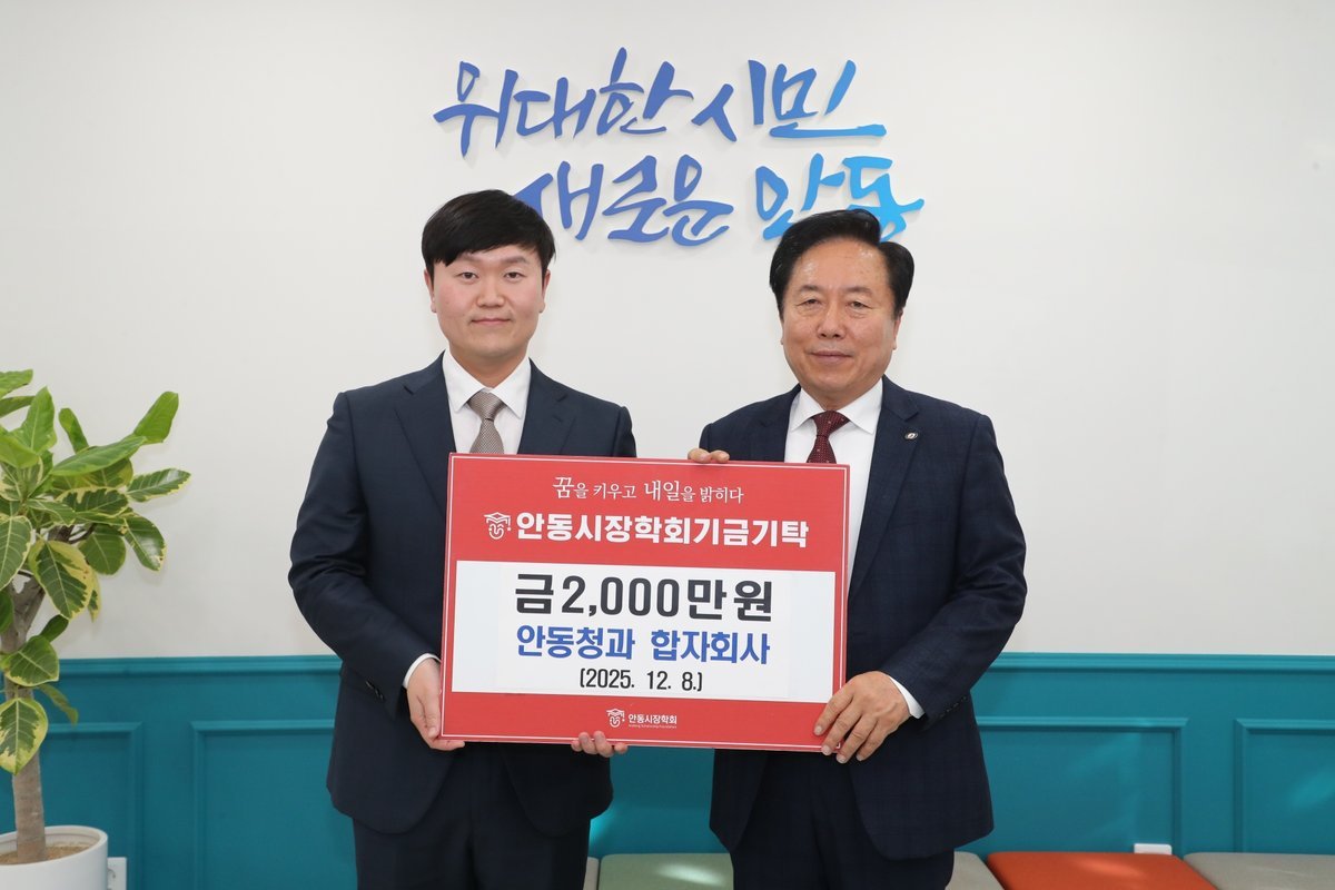 안동시 관계자는 “매년 지역 인재 양성을 위해 큰 뜻을 실천해 주시는 안동청과 권민성 대표께 깊이 감사드린다”며 “기탁된 장학기금은 미래 인재 육성에 소중히 사용하겠다”고 전했다.