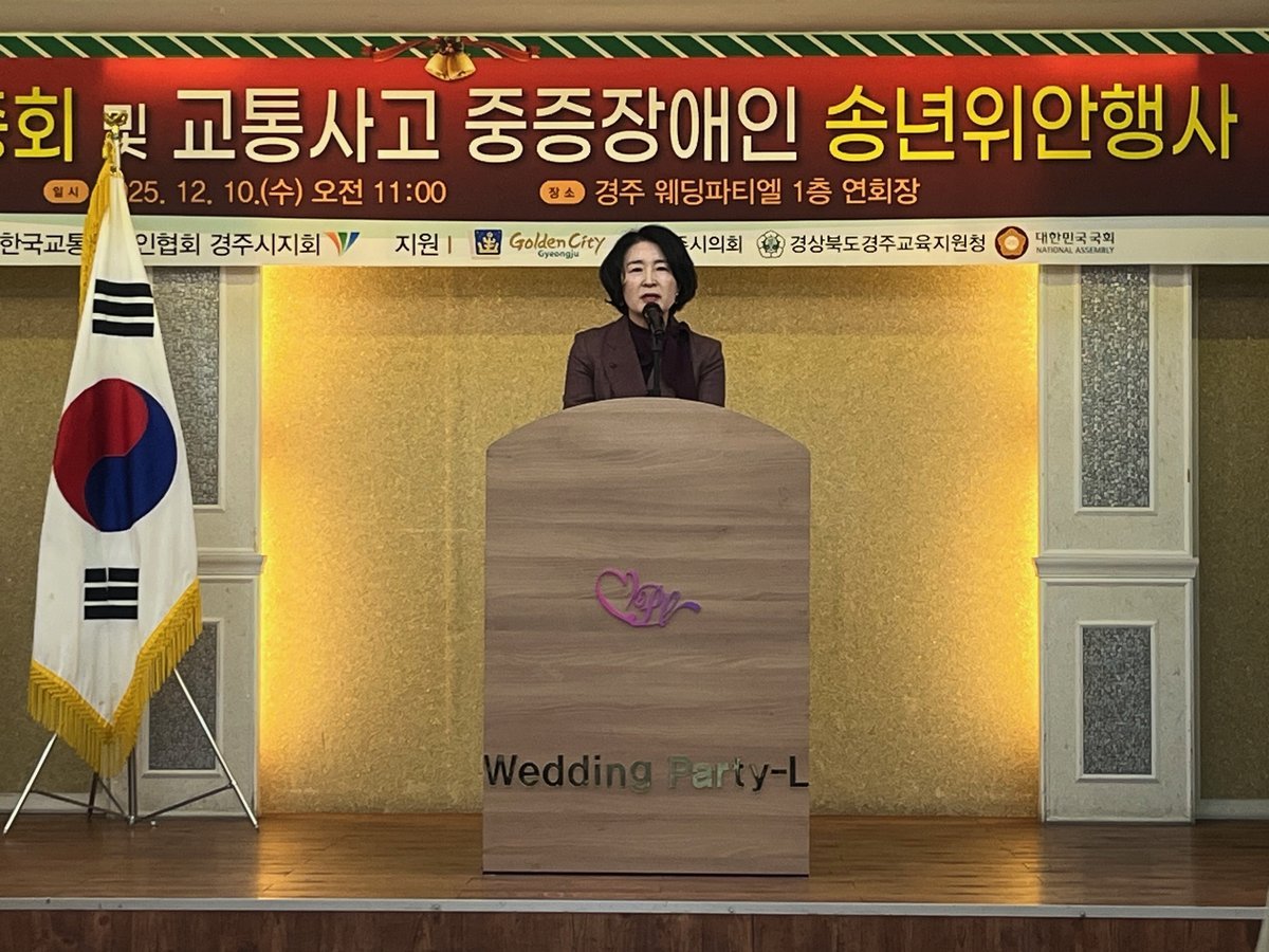 행사에는 한국교통장애인협회 경주시지회 회원, 자원봉사자, 후원자, 유공자, 내빈 등 200여 명이 참석해 올 한 해 추진된 주요 활동을 공유하고 유공자‧자원봉사자 표창을 통해 교통장애인 복지 향상과 권익 증진의 의미를 되새겼다.