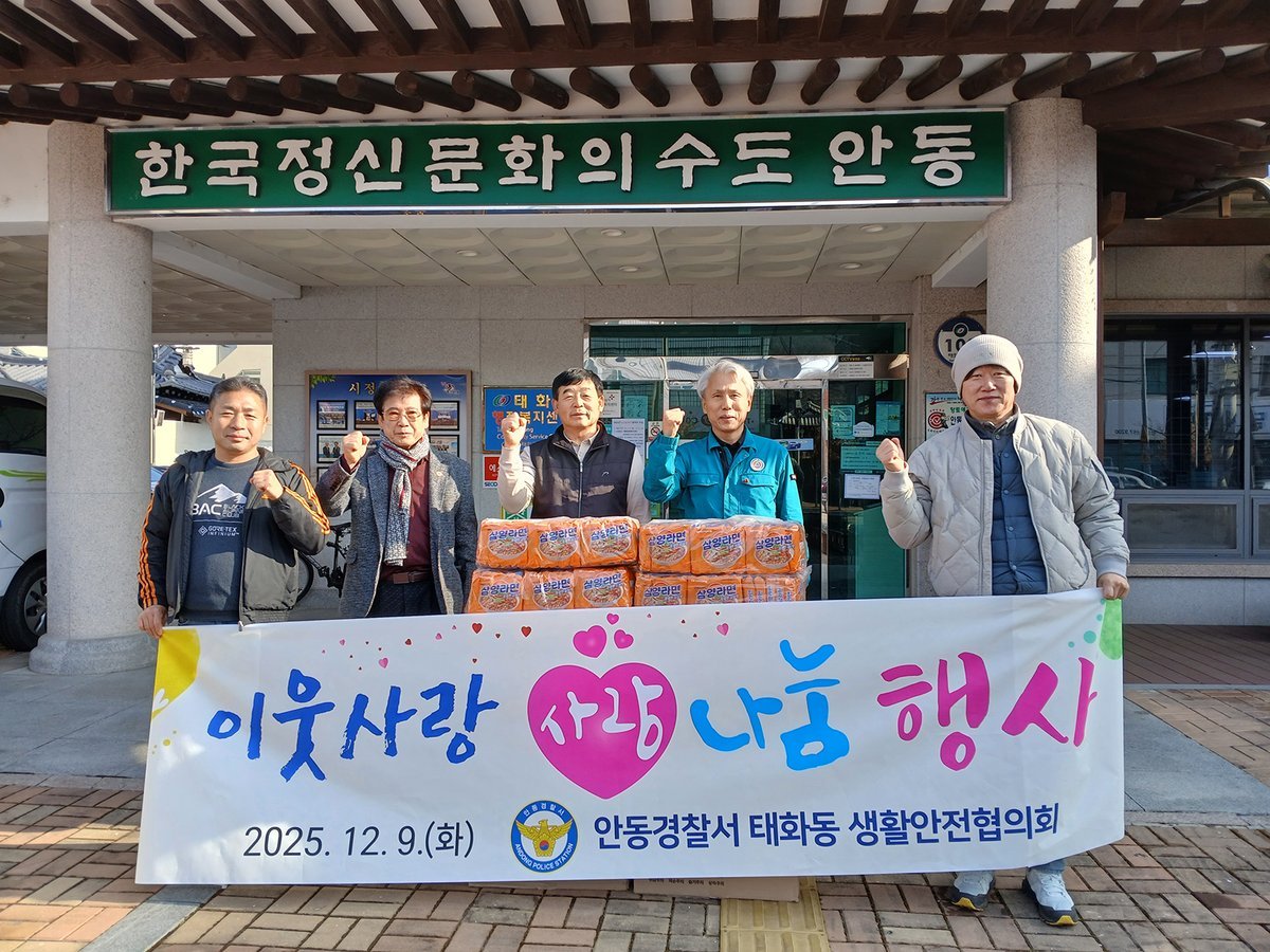 [Q뉴스] 안동경찰서 태화동 생활안전협의회은 12월 10일 태화동 행정복지센터를 방문해 태화동 경로당 어르신들께 전달할 라면을 기탁하며, 올해 두 번째 라면 나눔을 실천했다.