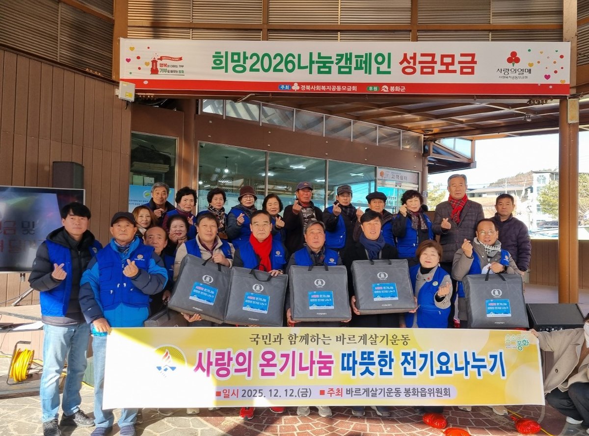 김규하 봉화읍장은 “이번 나눔캠페인은 어려운 이웃에게 실질적인 힘을 전달하기 위한 소중한 자리”라며 “봉화군은 캠페인을 시작으로 내년 1월 말까지 지속적인 모금 활동을 이어가고, 도움이 필요한 분들께 필요한 지원이 신속하게 전달될 수 있도록 다양한 나눔 프로그램을 적극 추진하겠다. 군민 여러분의 따뜻한 참여가 더 큰 희망을 만든다”고 전했다