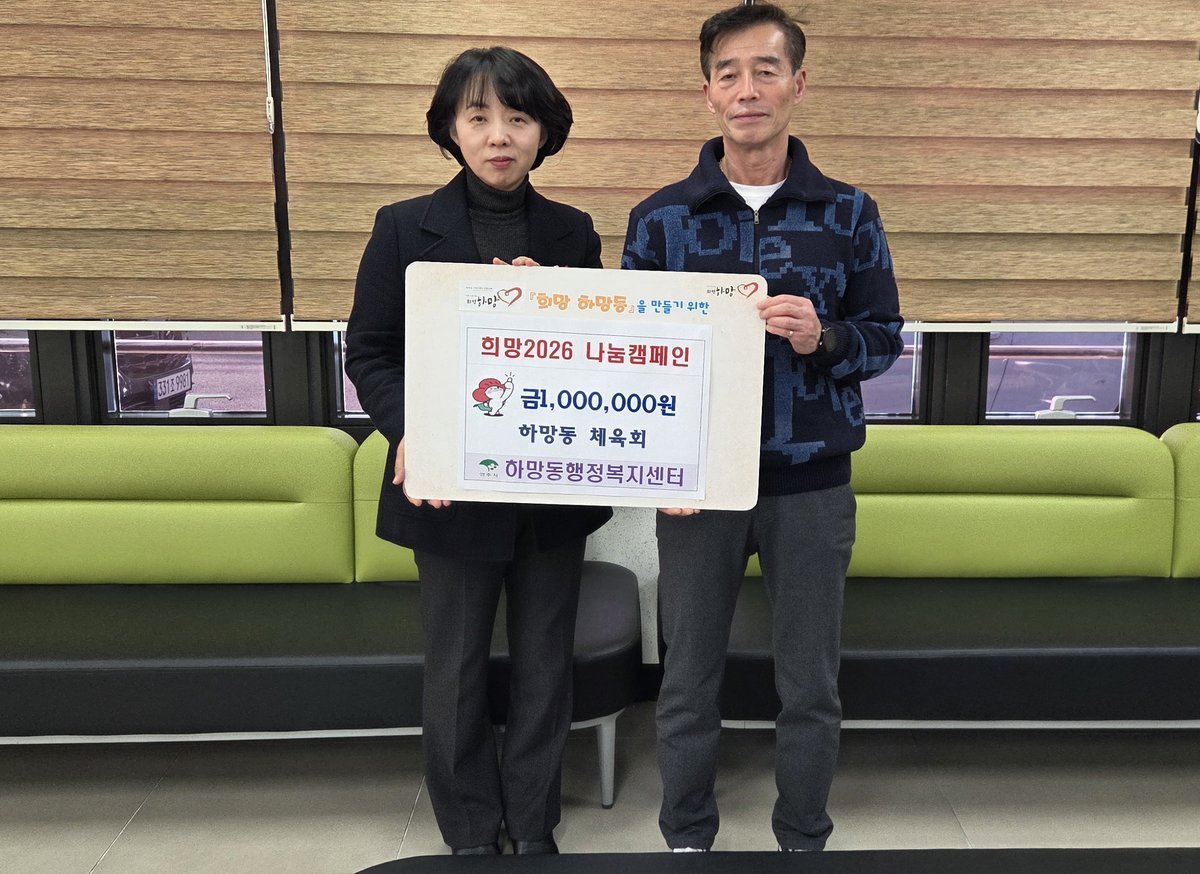 박미선 하망동장은 “어려운 경제 여건에도 불구하고 희망2026 나눔캠페인에 참여해 주신 체육회에 깊이 감사드린다”며 “기탁된 성금은 사회복지공동모금회를 통해 도움이 필요한 대상자에게 투명하게 전달될 수 있도록 하겠다”고 전했다.