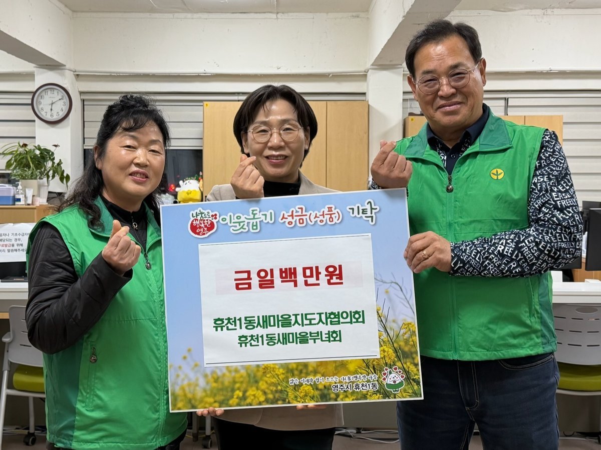 [Q뉴스] 영주시 휴천1동 새마을지도자협의회와 새마을부녀회는 지난 11일 어려움이 있는 이웃들을 위해 사용해 달라며 후원금 100만 원을 휴천1동 지역사회보장협의체에 전달했다.