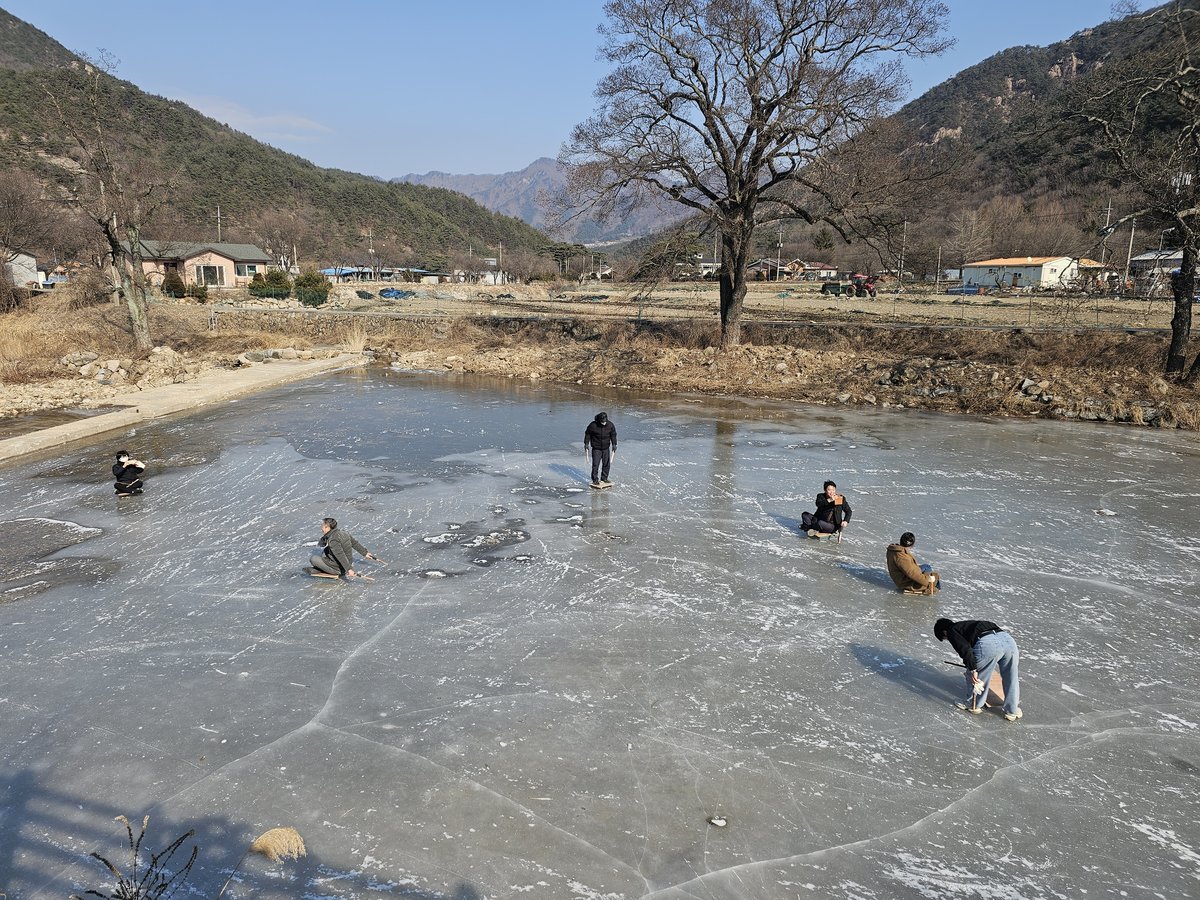 [Q뉴스] 상주시 화북면은 겨울철 여가활동과 가족 단위 체험 기회를 제공하기 위해 용유천에 얼음썰매장을 조성하고 개장했다.