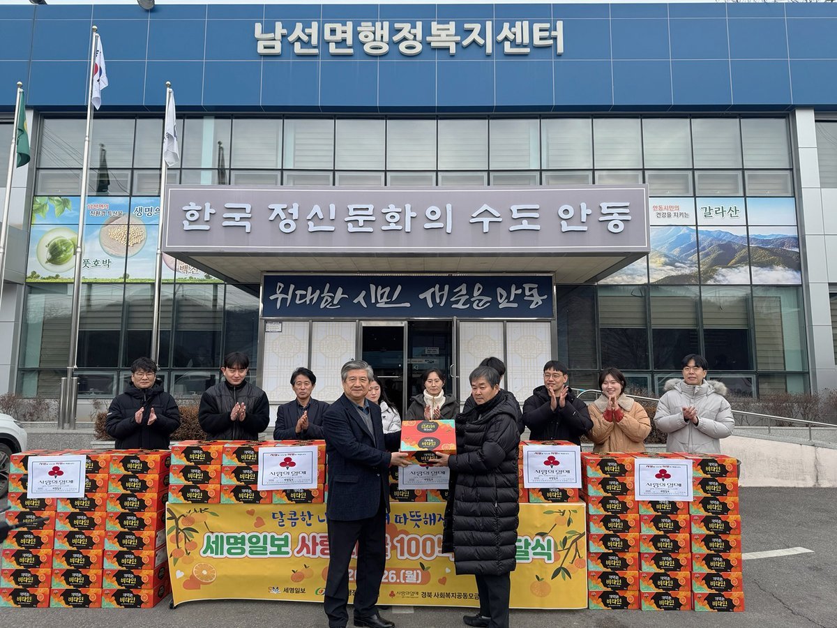 [Q뉴스] 안동시 세명일보는 1월 26일 관내 경로당 어르신들을 위해 감귤 100박스를 남선면행정복지센터에 전달했다.