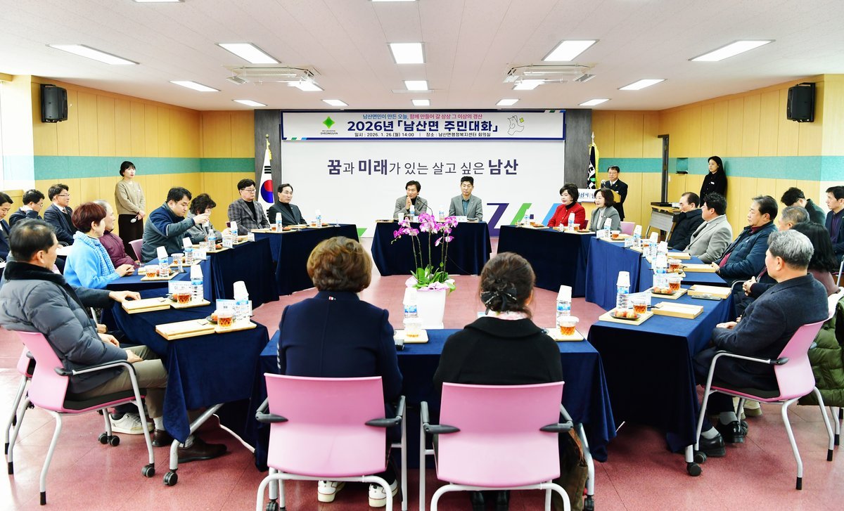 [Q뉴스] 경산시는 26일 남산면 행정복지센터 대회의실에서 진행되는 2026년 남산면 주민과의 대화에 참석해 지역 현안을 점검하고 주민들의 다양한 건의 사항을 경청하며 적극적인 소통에 나섰다.