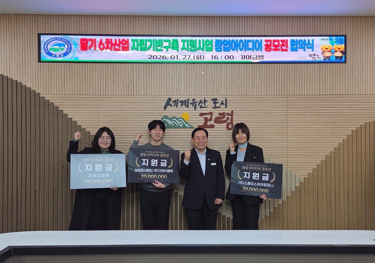[Q뉴스] 고령딸기농촌융복합사업추진단은 2026년 1월 27일 고령군청 가야금방에서 '딸기 6차산업 자립기반구축 지원사업'창업 아이디어 공모전 수상자 3팀을 선정했다.