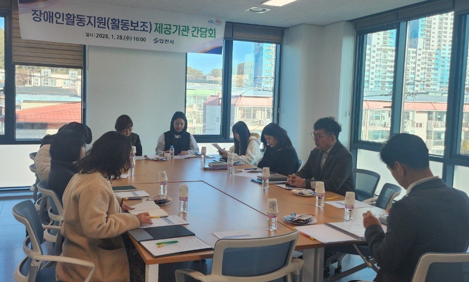[Q뉴스] 영천시는 28일 장애인활동지원 담당자와 장애인종합복지관, 지역자활센터, 한국척수장애인협회 영천시지회 장애인활동지원 제공기관이 참석한 가운데 ‘장애인활동지원 제공기관 간담회’를 개최했다.