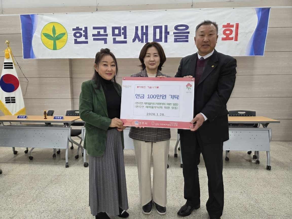 [Q뉴스] 현곡면 새마을지도자협의회 및 새마을부녀회는 1월28일 어려운 이웃들이 따뜻한 겨울을 보낼 수 있도록 불우이웃돕기 성금 100만원을 현곡면사무소에 전달하며 지역사회 나눔 문화 확산에 훈훈한 기운을 불어넣었다.