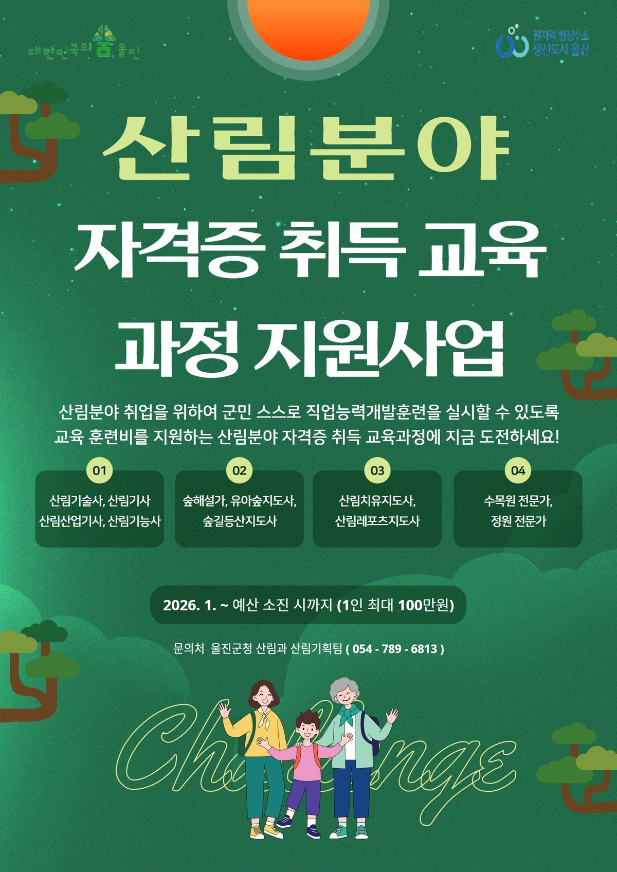 [Q뉴스] 울진군은 군민의 산림분야 취업지원을 위해 자기주도 직업능력개발훈련을 지원하는 산림분야 자격증 취득 교육과정 지원사업을 실시한다.