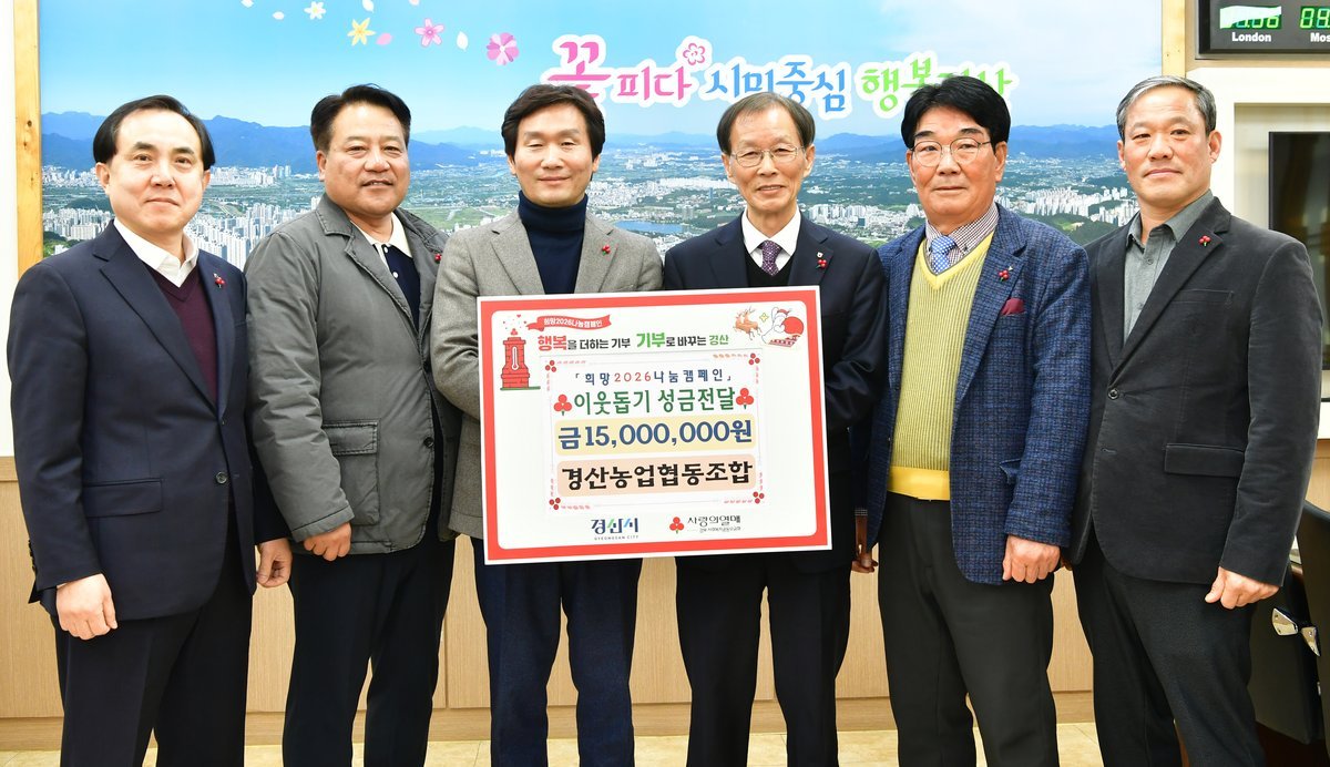 조현일 경산시장은"늘 지역과 함께해 온 경산농업협동조합의 따뜻한 나눔에 깊이 감사드린다"며"기탁해 주신 성금은 도움이 필요한 이웃에게 소중히 전달되어 따뜻한 온기로 이어질 수 있도록 하겠다"고 말했다.