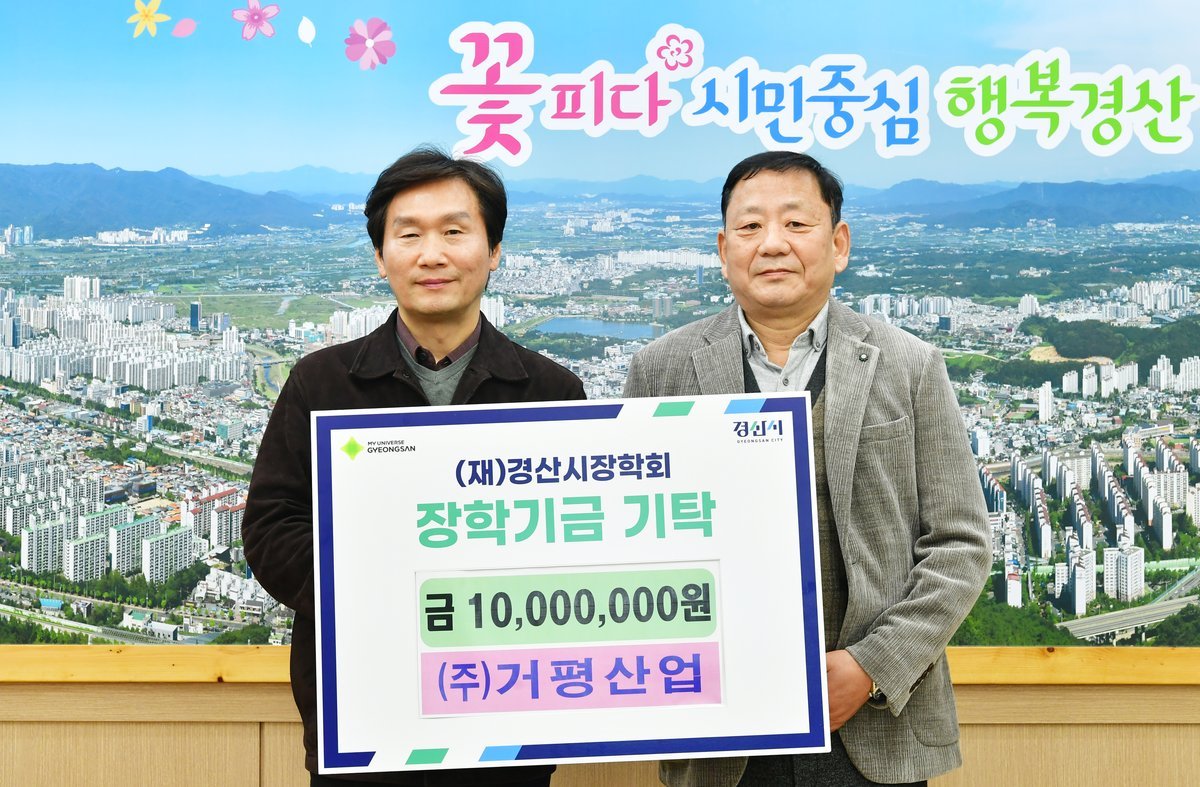 [Q뉴스] 경산시장학회는 28일 ㈜거평산업이 지역 인재 육성을 위한 장학금 1000만원을 기탁했다고 밝혔다.