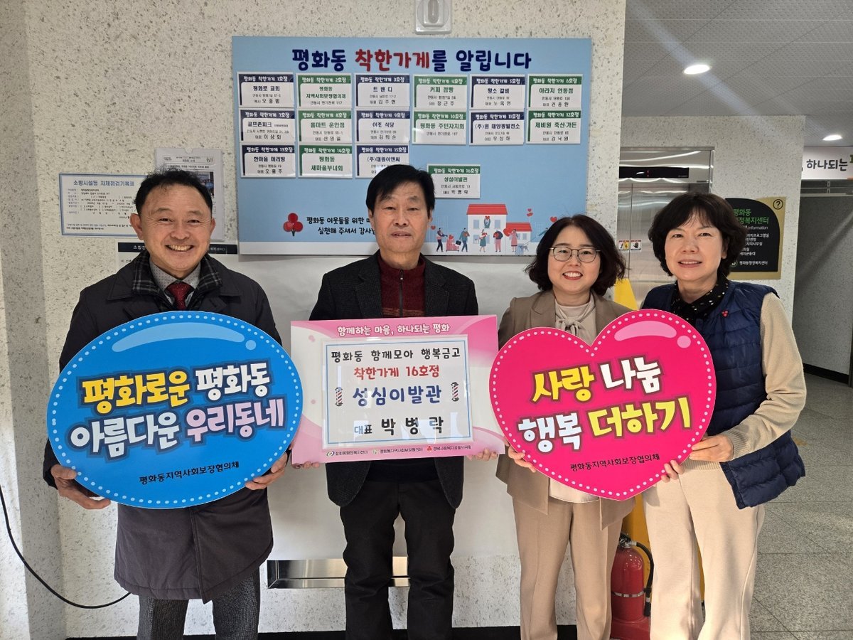 착한가게는 월 3만원 이상 일정 금액을 어려운 이웃을 위해 정기기부하며 나눔을 실천하는 사업장으로 모금된 기부금은 ‘평화동 함께모아 행복금고’를 통해 관내 어려운 이웃을 돕는 데 사용된다.