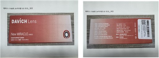 [Q뉴스] 식품의약품안전처는 의료기기제조업체인 ‘디케이메디비젼’에서 제조한 ‘DAVICH LENS 3DAY COLOR’ 등 매일착용소프트콘택트렌즈 중 아래 16개 모델에 대해 판매를 중단하고 회수 조치했다고 밝혔다.