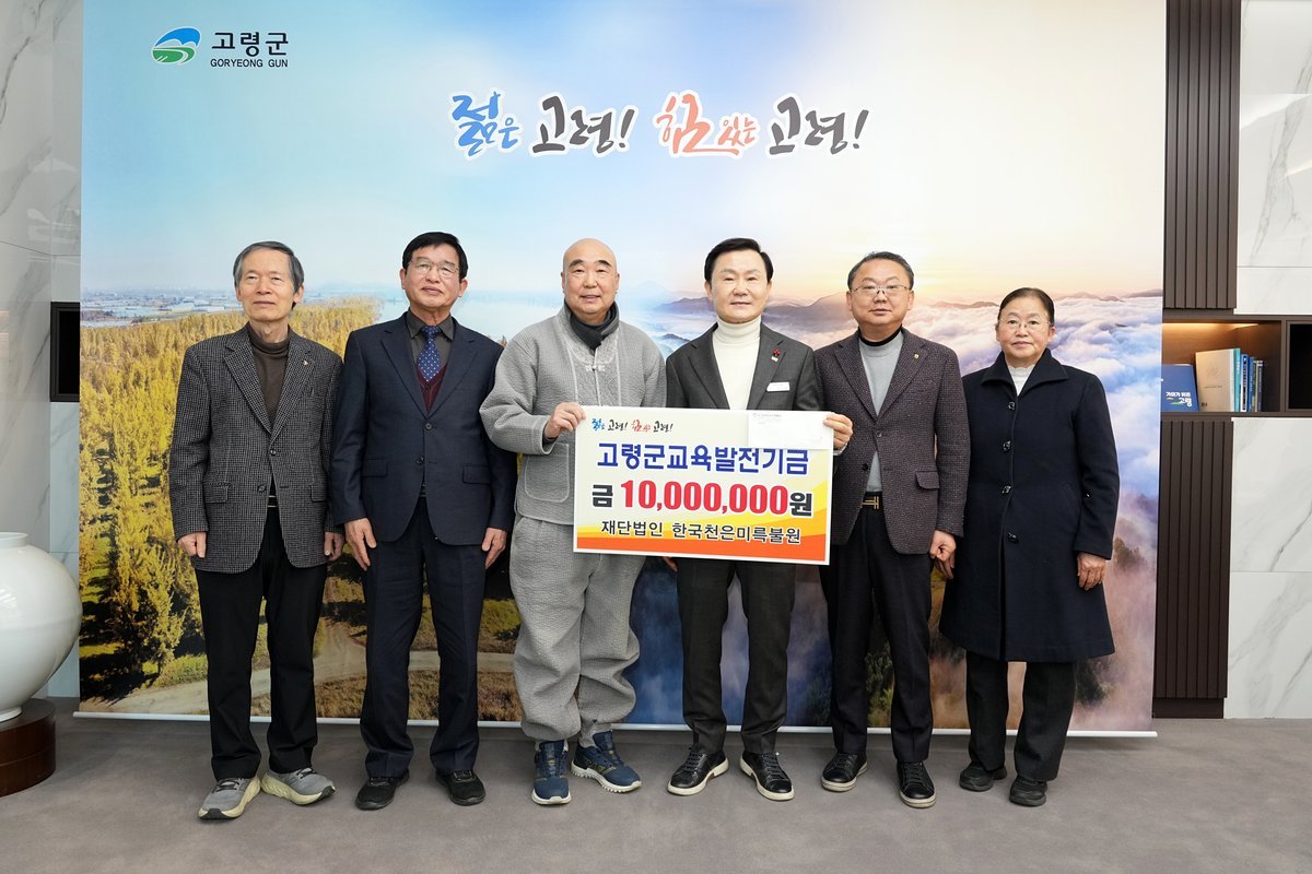이날 기탁식에 참석한 재단법인 한국천은미륵불원 진수한 스님은 "지역교육 활성화와 명품교육도시 육성을 위한 고령군의 노력에 동참할 수 있어서 기쁘다"며 "앞으로도 지역 발전과 인재 양성을 위해 지속적으로 힘을 보탤 수 있도록 하겠다"고 말했다.