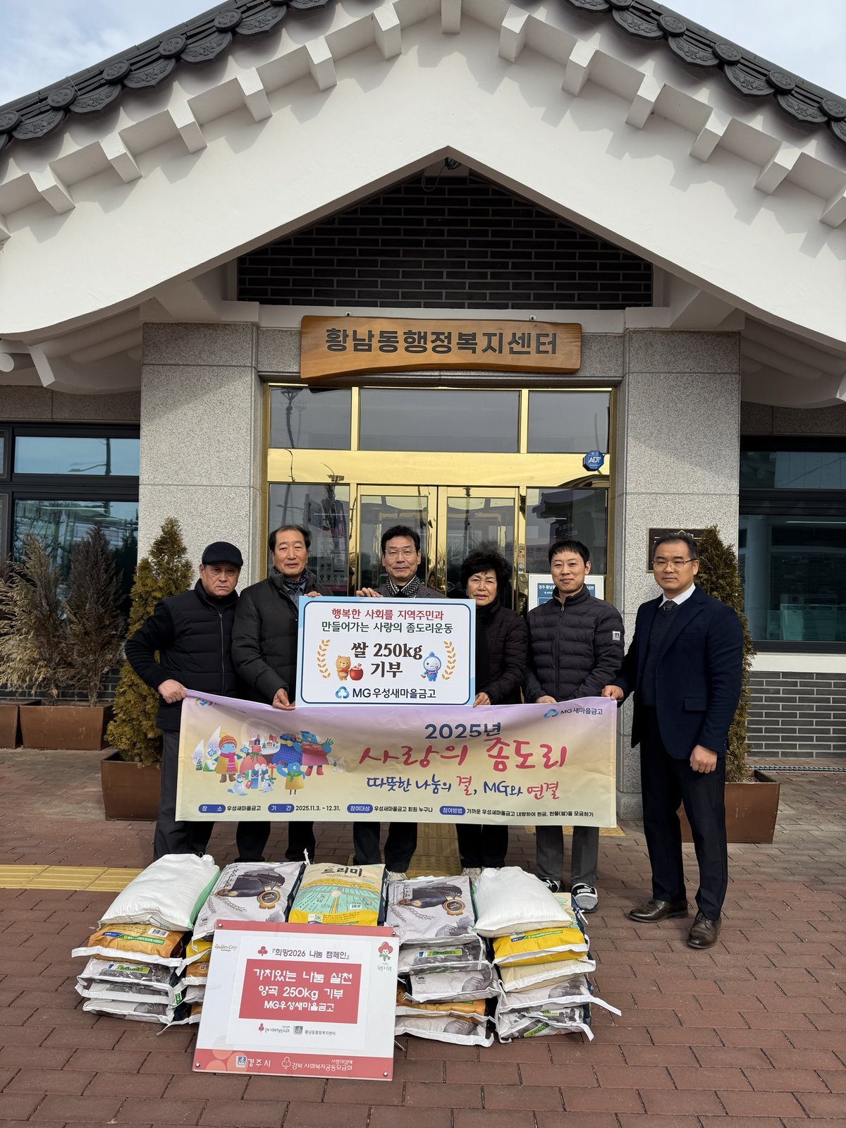 [Q뉴스] MG우성새마을금고는 2026년 2월 4일 황남동행정복지센터를 방문해 저소득 취약계층을 위해 쌀250kg을 전달했다.