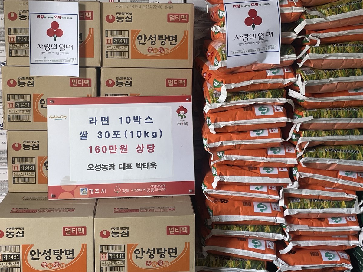 [Q뉴스] 2026년 2월 5일 경주시 불국동 시동에 위치한 양계농장인 오성농장에서 관내 어려운 이웃을 위해 라면 10박스 및 쌀 10kg 30포를 불국동행정복지센터에 기탁했다.