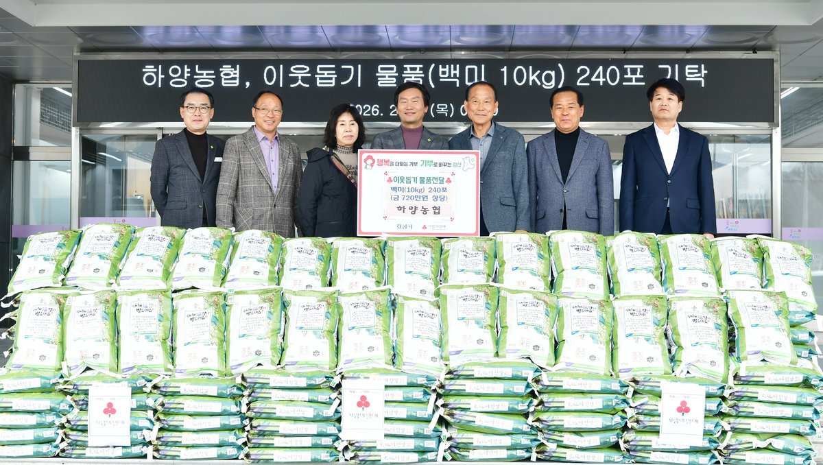 조현일 경산시장은 "지역사회를 향한 따뜻한 나눔을 실천해 주신 하양농협에 감사 드린다"며 "기탁해 주신 백미는 도움이 필요한 취약 계층에 소중히 전달하겠다"고 전했다.